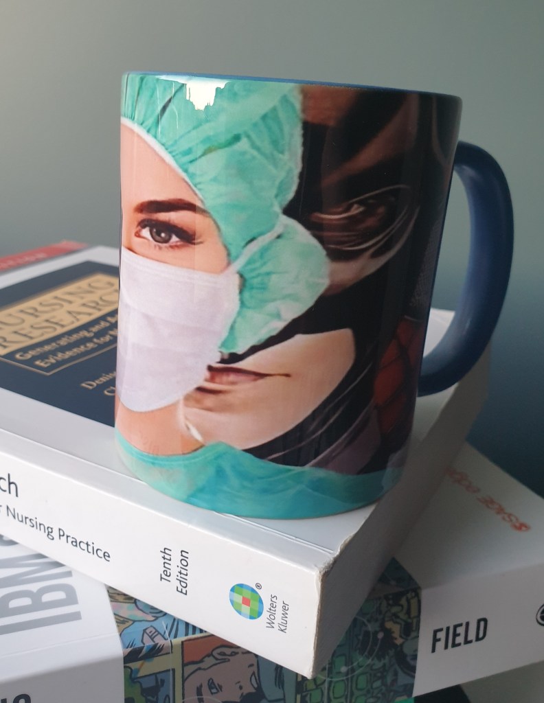 For litt over en måned siden sendte jeg en bursdagsgave til Lill – hukommelsen min spilte meg et puss. Jeg trodde det var JUNI, ikke JULI som var hennes fødselsdagsmåned. Det kan derfor hende hun har pakket opp gaven forlengst. Jeg har aldri noen gang sendt Lill en presang til gebursdagen hennes, men denne gaven bare måtte jeg sende. Det hun fikk var et sykepleier-superhelt-krus og et kort der jeg fremhevet at alle gjenger av superhelter er avhengig av en stødig og god ledelse for å kunne fungere optimalt, det vet jo alle som har sett Avengers fordi «Every team needs a Captein«. Jeg var glad at nettopp hun var blitt den lederen.